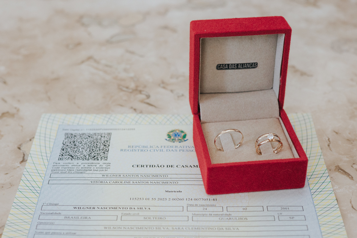 O casamento civil da Vitória e do Will aconteceu no Cartório Santa Teresinha, em Santo André (SP), em uma cerimônia leve, cheia de amor e significado.
