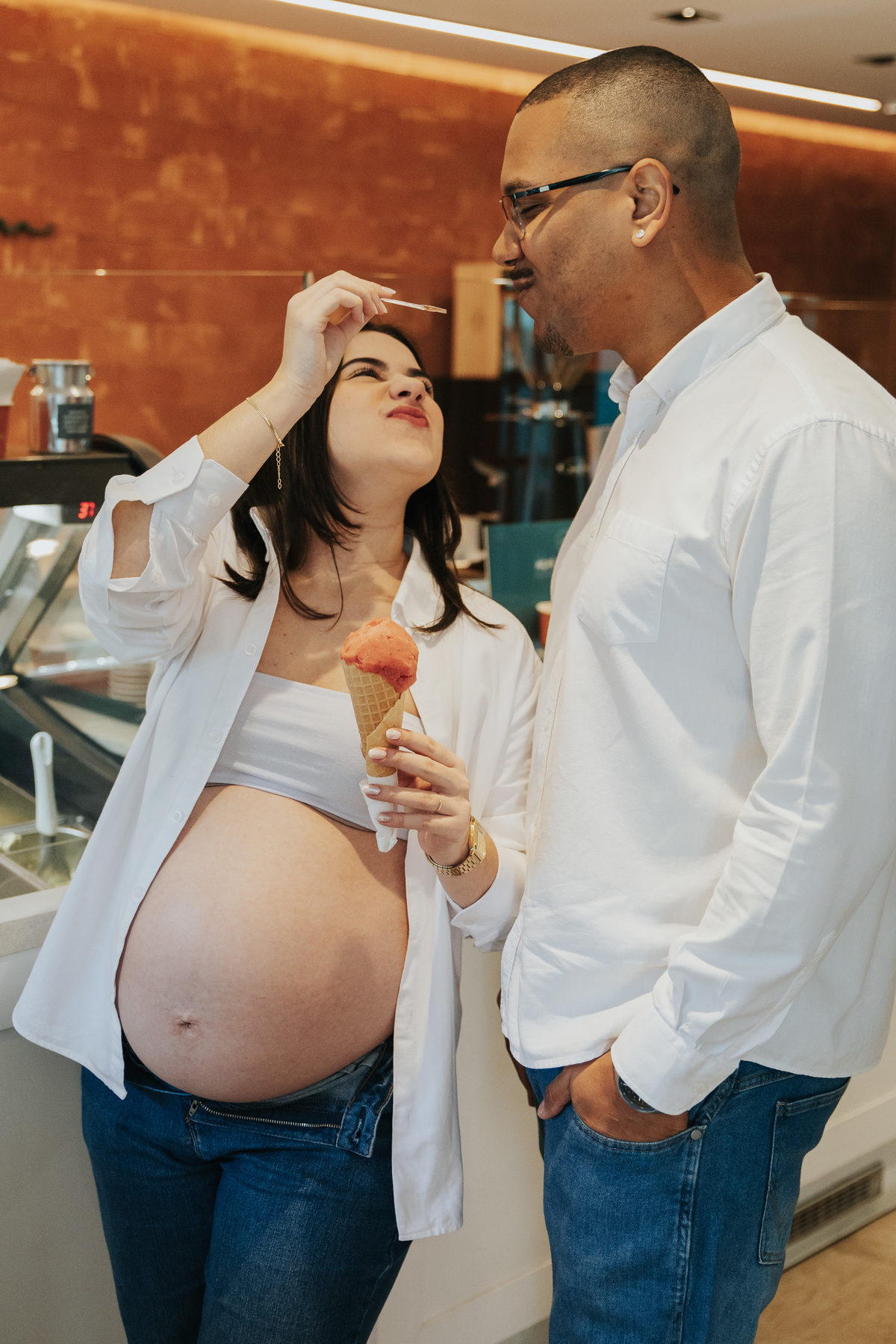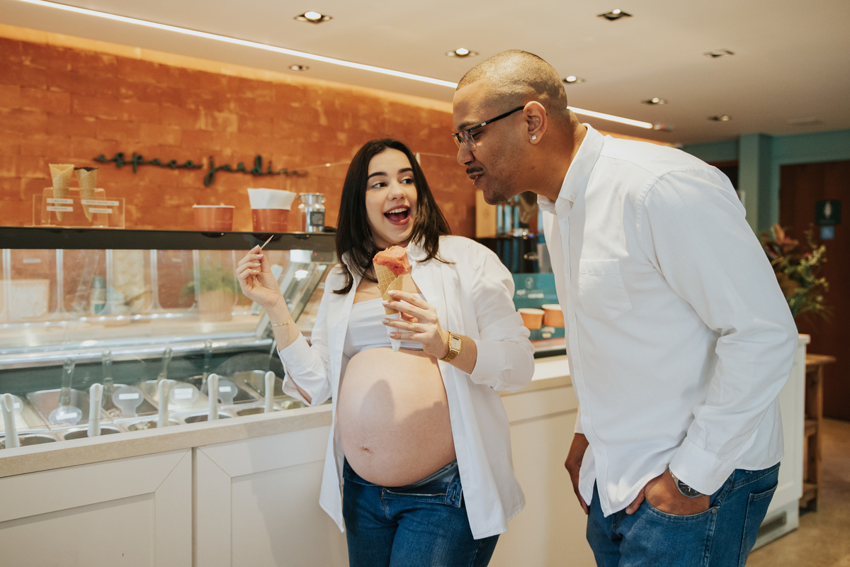 Ensaio casal Santo André Gelateria Espaço Jardim Campestre Ensaio romântico Fotografia de casal São Paulo Ensaio Gestante Diferente