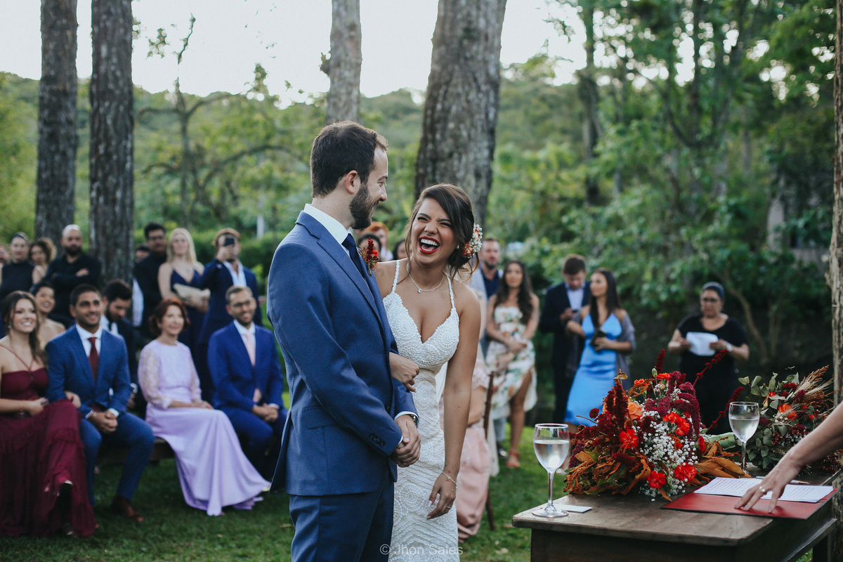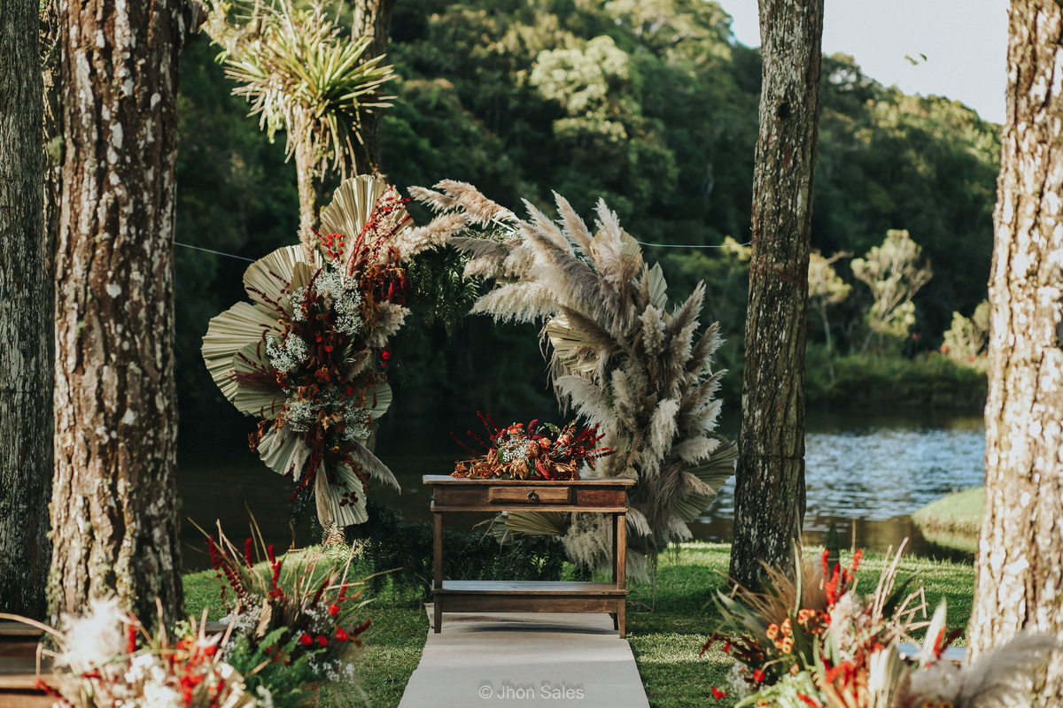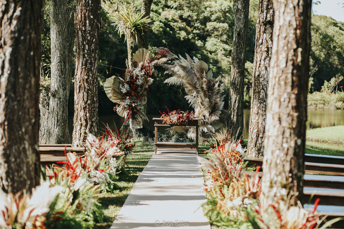 Cerimônia realizada ao ar livre, junto a natureza num final de tarde maravilhoso, com uma festa incrível e