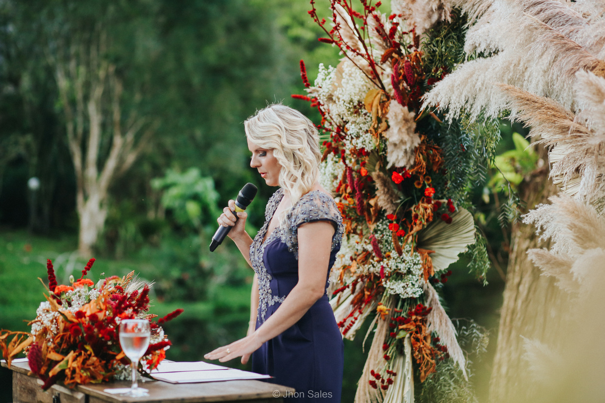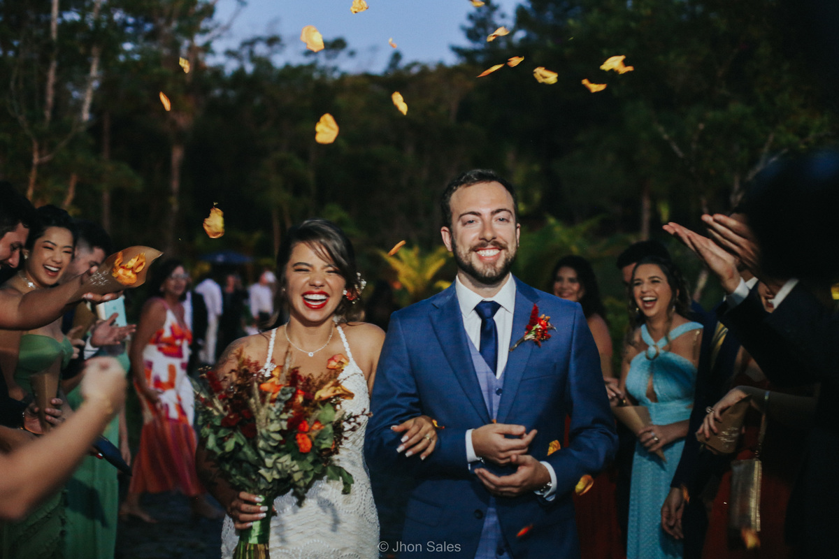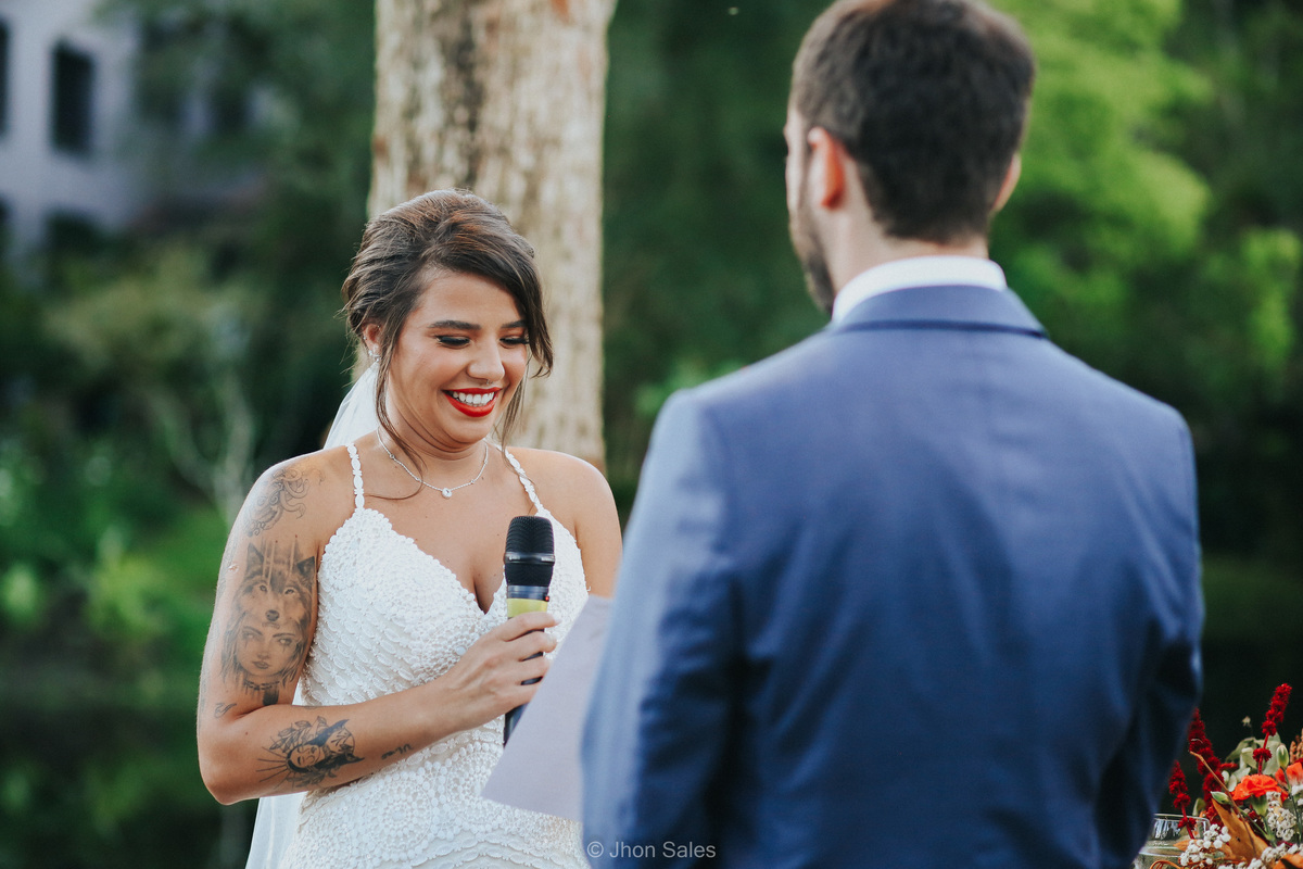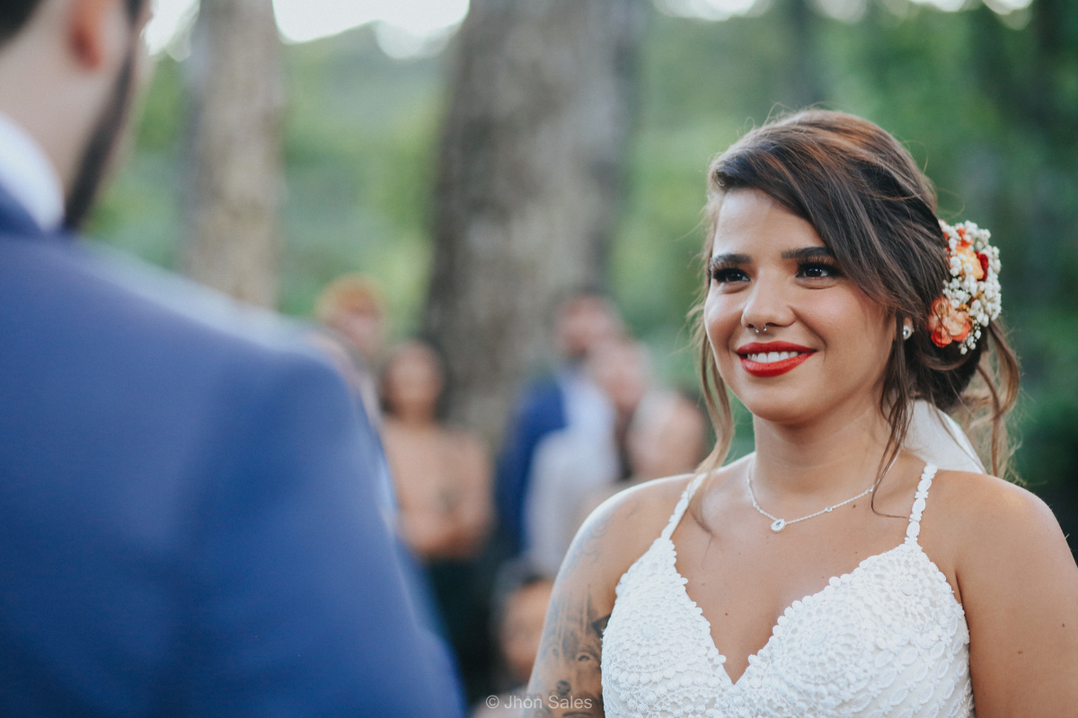 Cerimônia realizada ao ar livre, junto a natureza num final de tarde maravilhoso, com uma festa incrível e