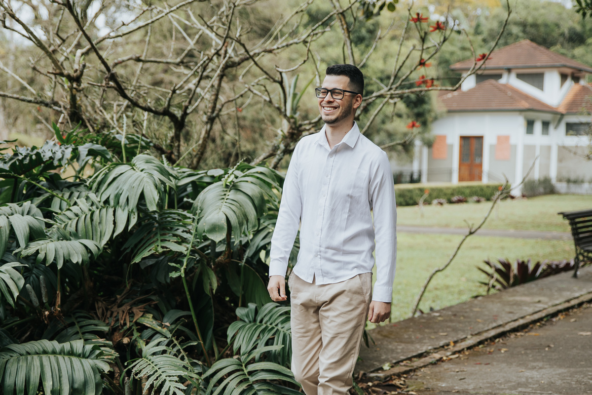 No Jardim Botânico de São Paulo, Sara e Tainan protagonizaram um ensaio pré-wedding romântico e cinematográfico. Entre a natureza exuberante, flores e caminhos verdes, o casal aproveitou cada instante para criar fotos de casal cheias de amor, leveza e personalidade.